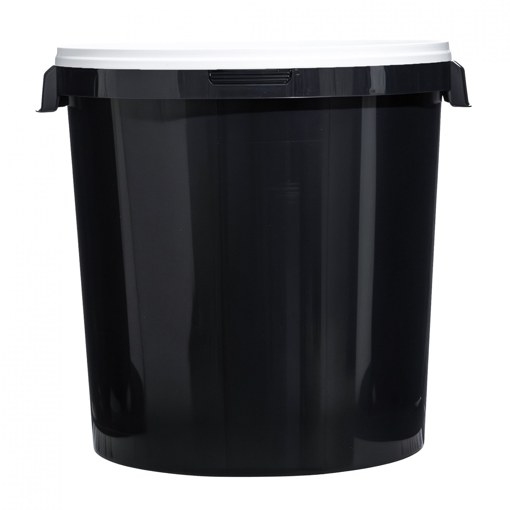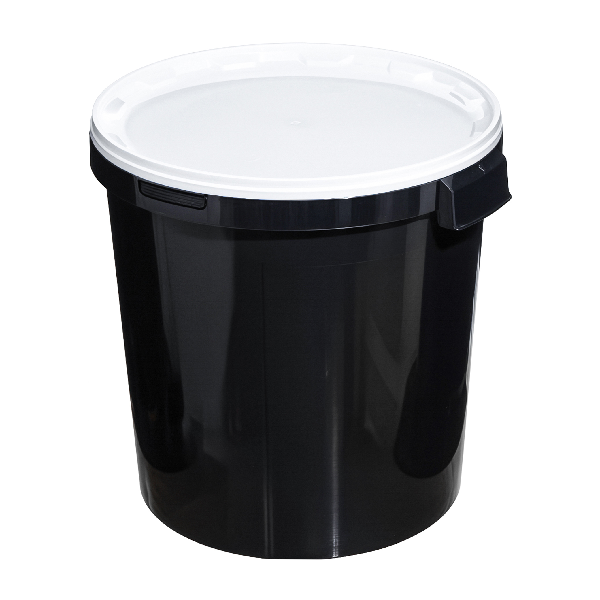 Техническое пластиковое ведро объемом 32,8 литра без ручки, с герметичной крышкой белого цвета.