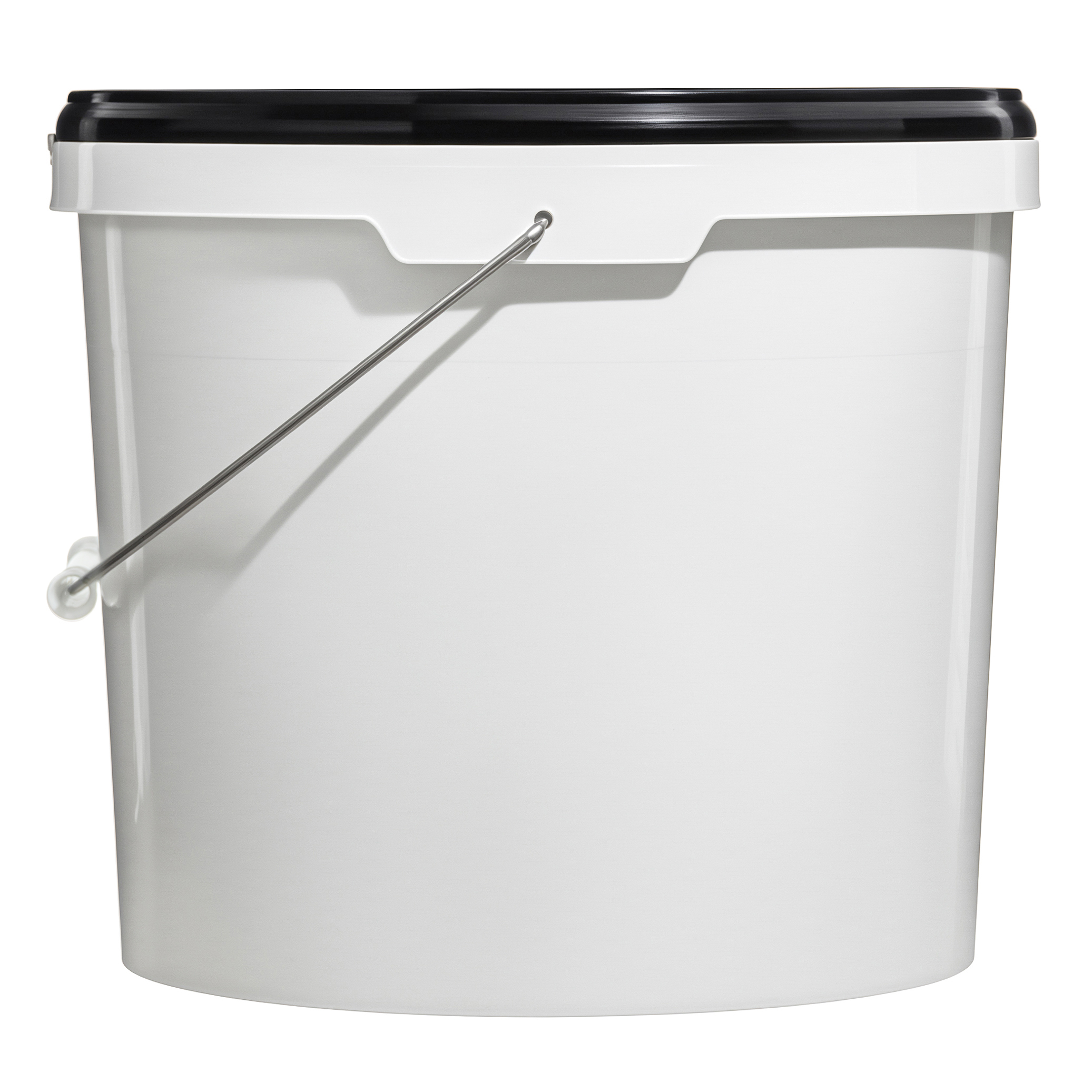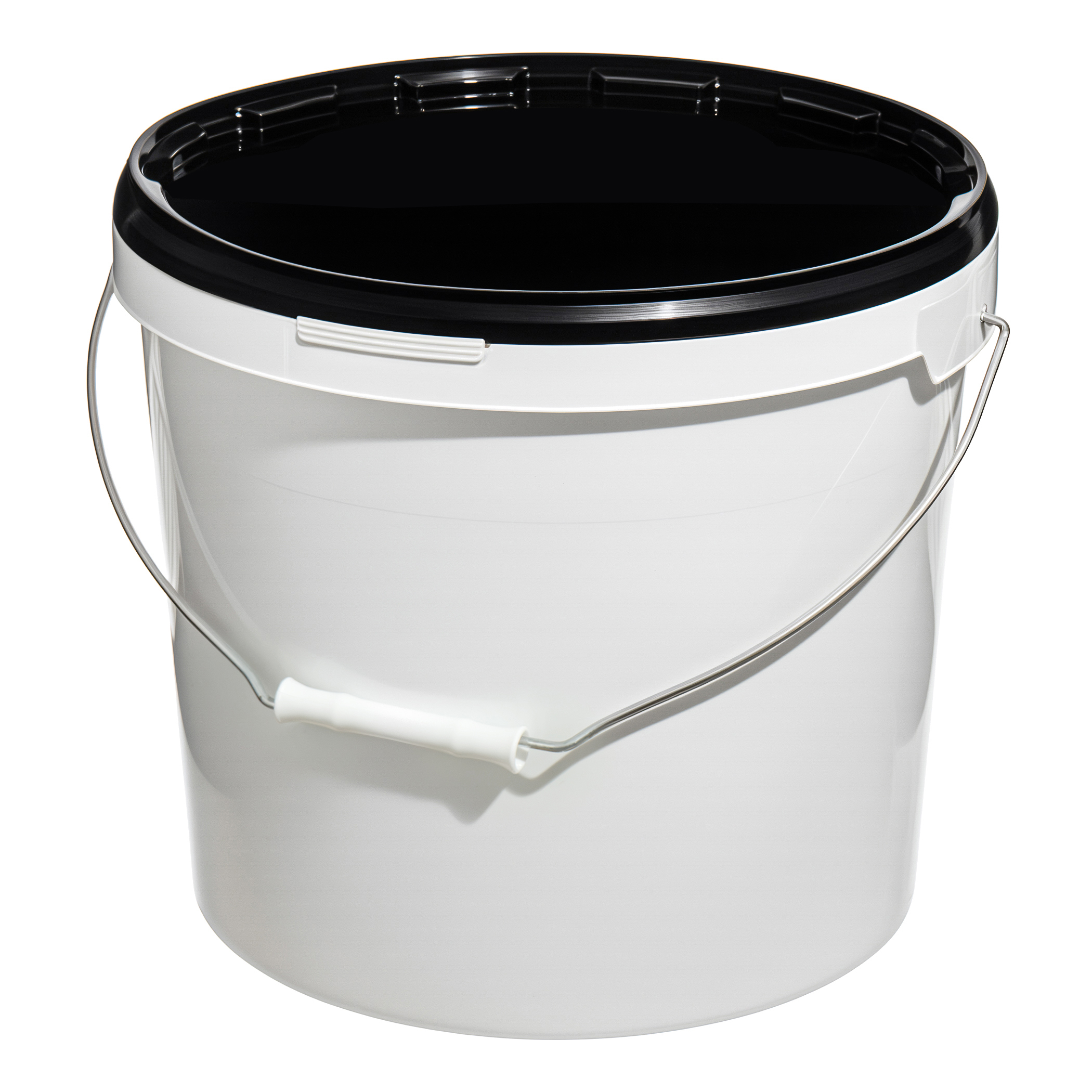 Пластиковое ведро JET 150 объемом 15,9 литра с металлической ручкой и крышкой черного цвета. Подойдет для хранения, перевозки и продажи бытовой химии, ЛКМ, сухих смесей и т.д.  Наши ведра продлевают срок годности продукта, за счет герметичности крышки, они удобно в использовании, благодаря прочной ручке и на 100% пригодно для вторичной переработки. Доступна цифровая и офсетная печать как на крышке, так и на корпусе.