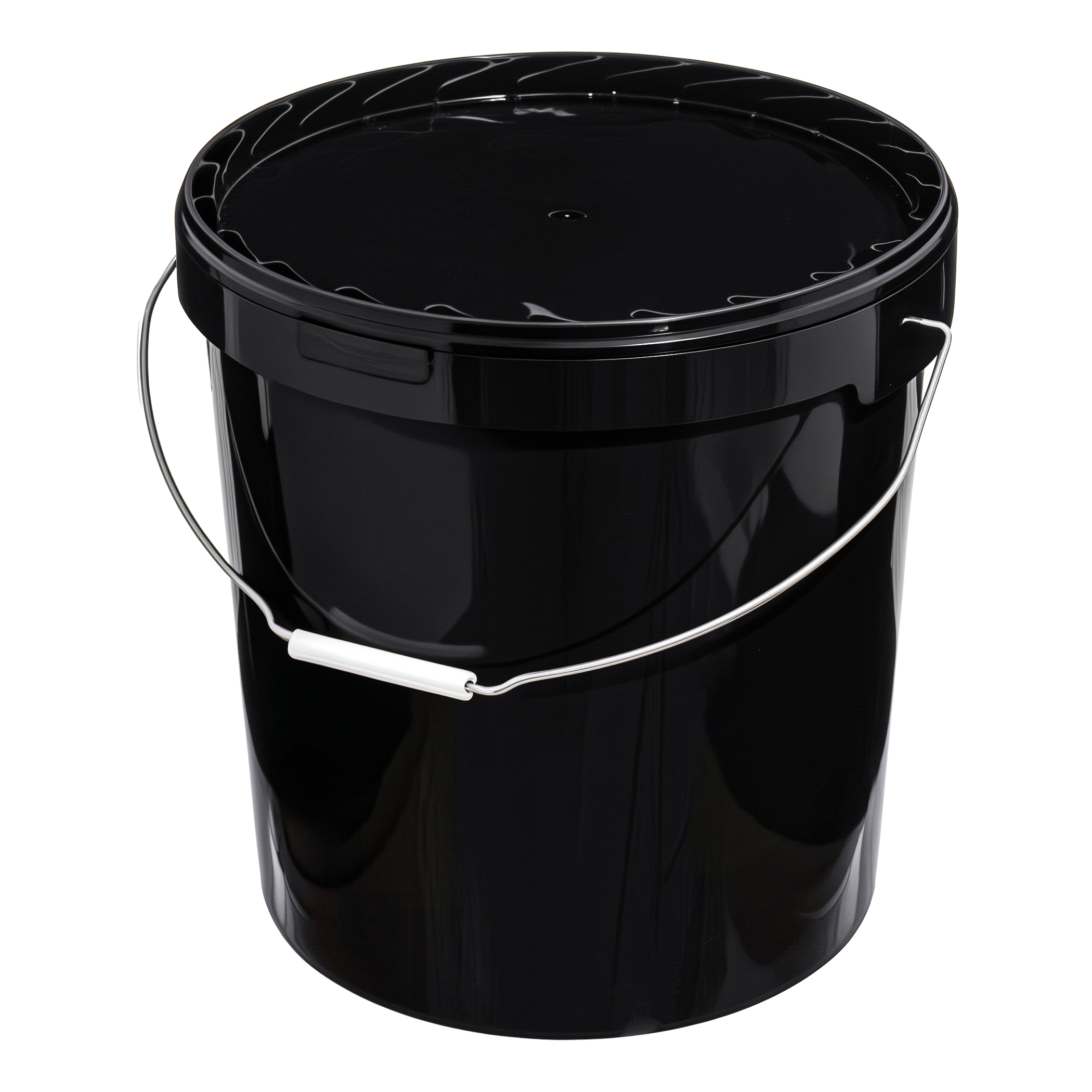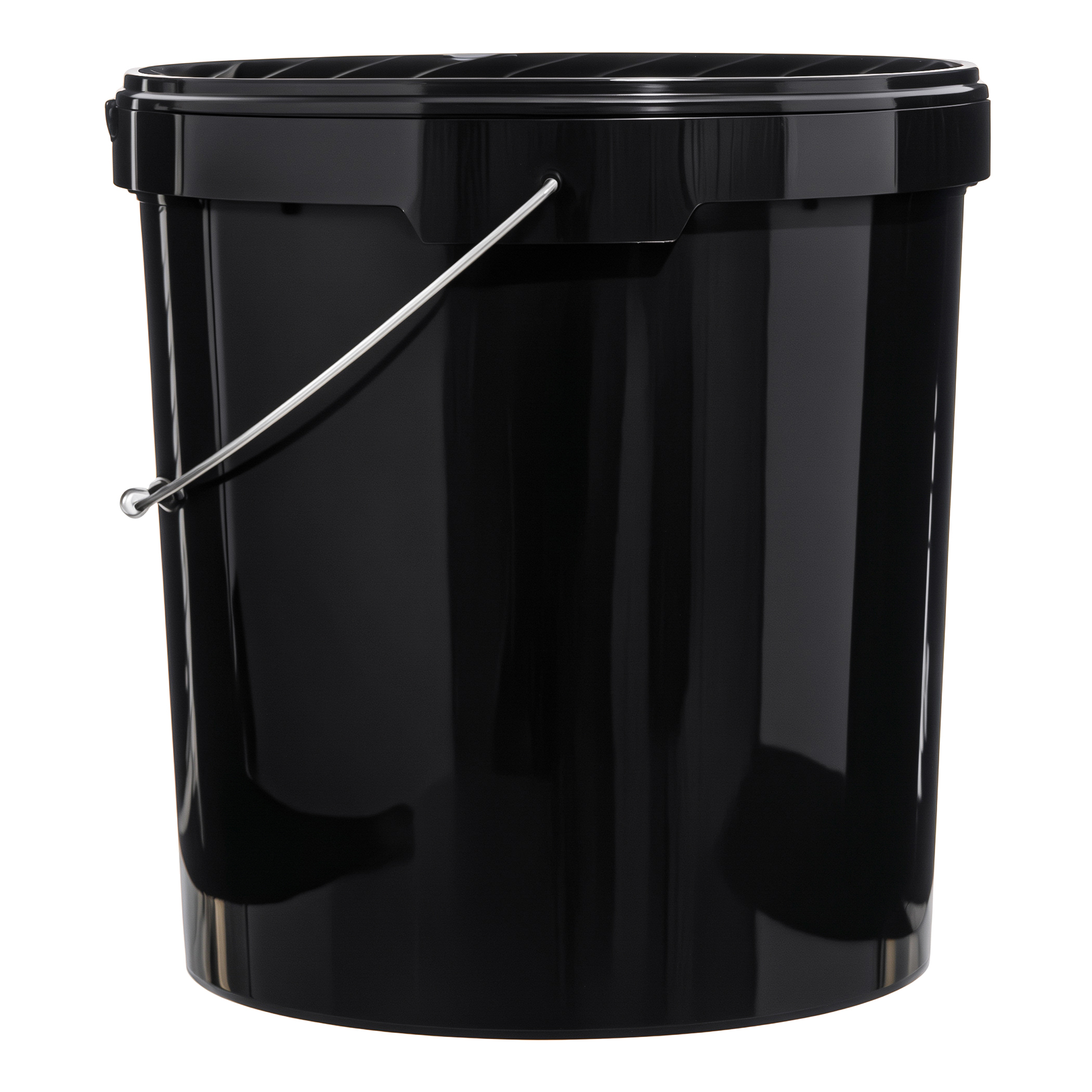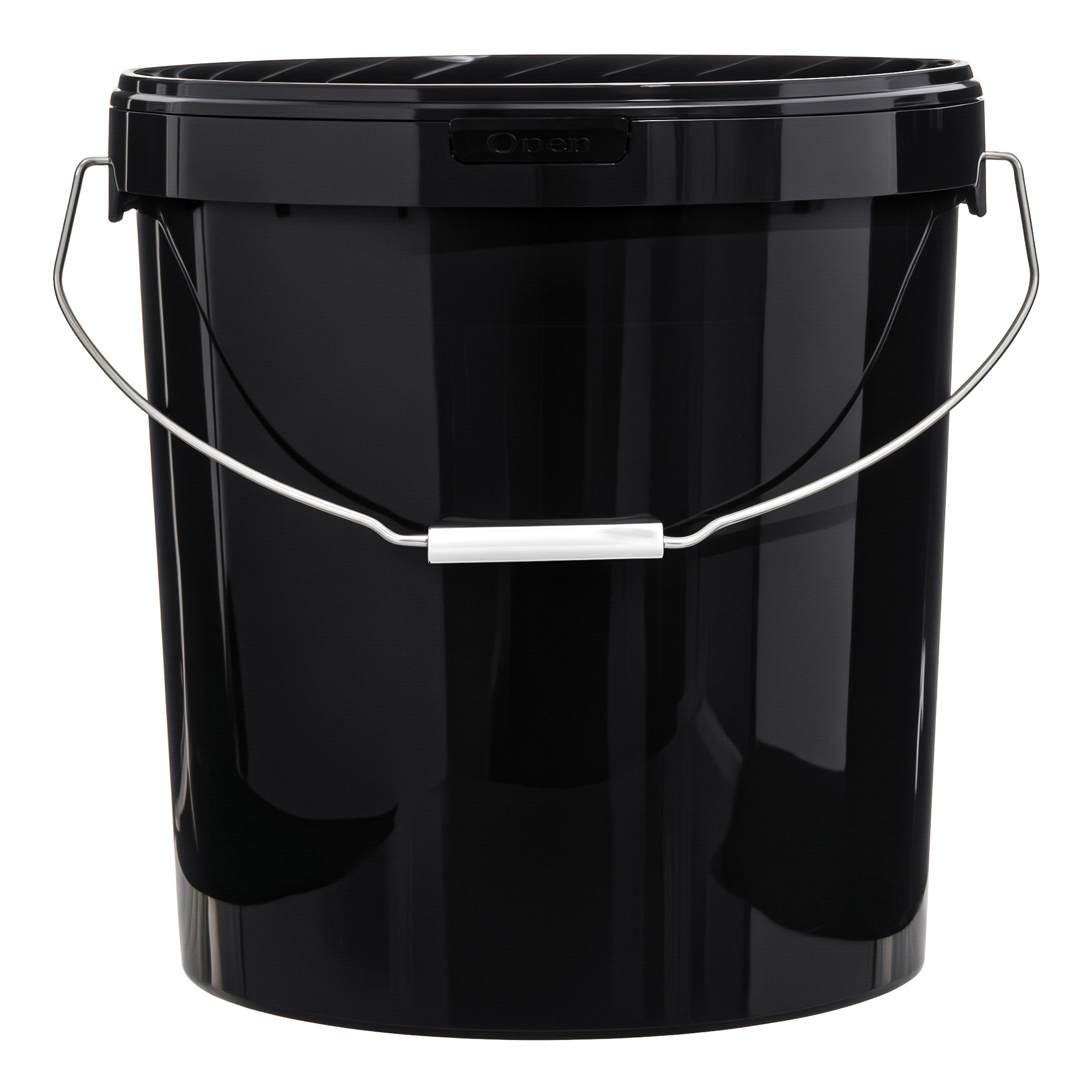 Пластиковое ведро JET+ 205 (20,6 л) с крышкой и металлической ручкой, черное техническое, с трехконтурным замком.
