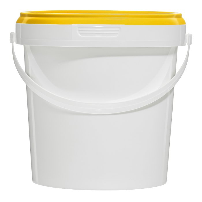 Ведро из пищевого пластика объемом 1,2 литра с крышкой желтого цвета. Приобрести можно как оптом, так и в розницу, на всей территории России, доступен самовывоз в Тюмени. Есть услуги офсетной/IML печати как на корпусе, так и на крышке. Прочная пластиковая ручка.