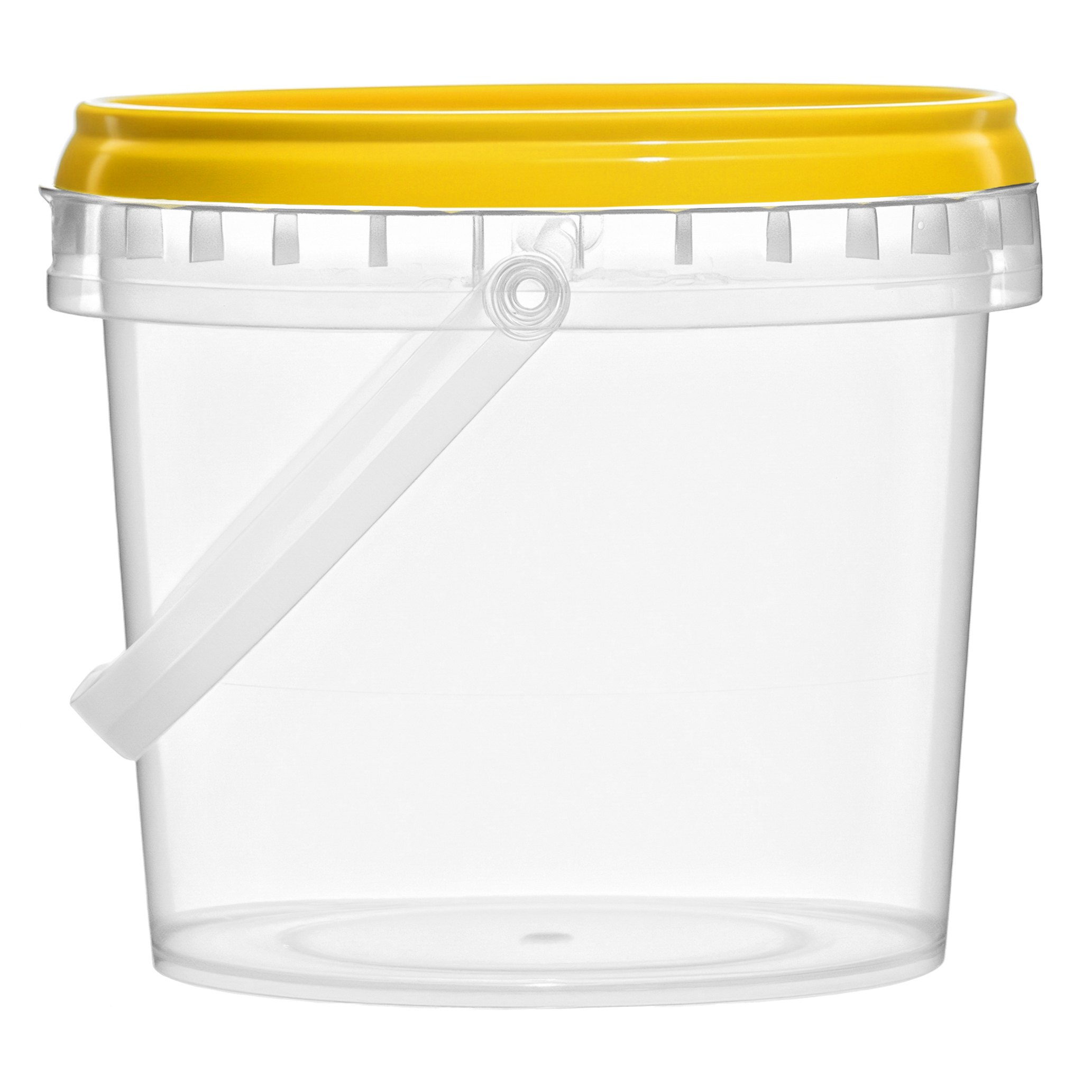 Небольшое пластиковое прозрачное ведро объемом 365 мл с желтой крышкой и ручкой. Отличный выбор для тех, кто ценит практичность и качество. Есть другие цвета крышек на выбор, а также полностью белые ведра. Оптовая закупка доступна для всей территории России, в Тюмени доступен самовывоз.