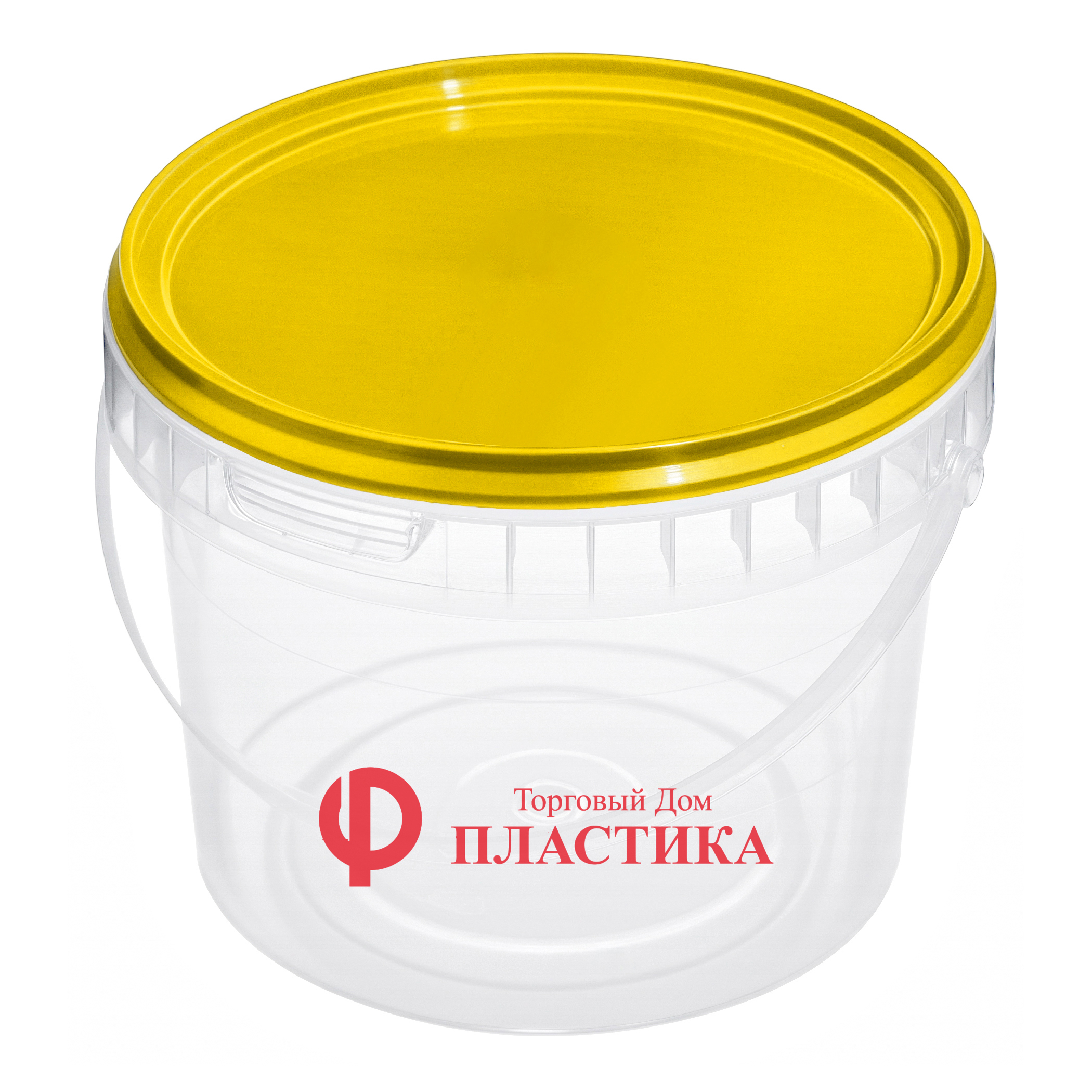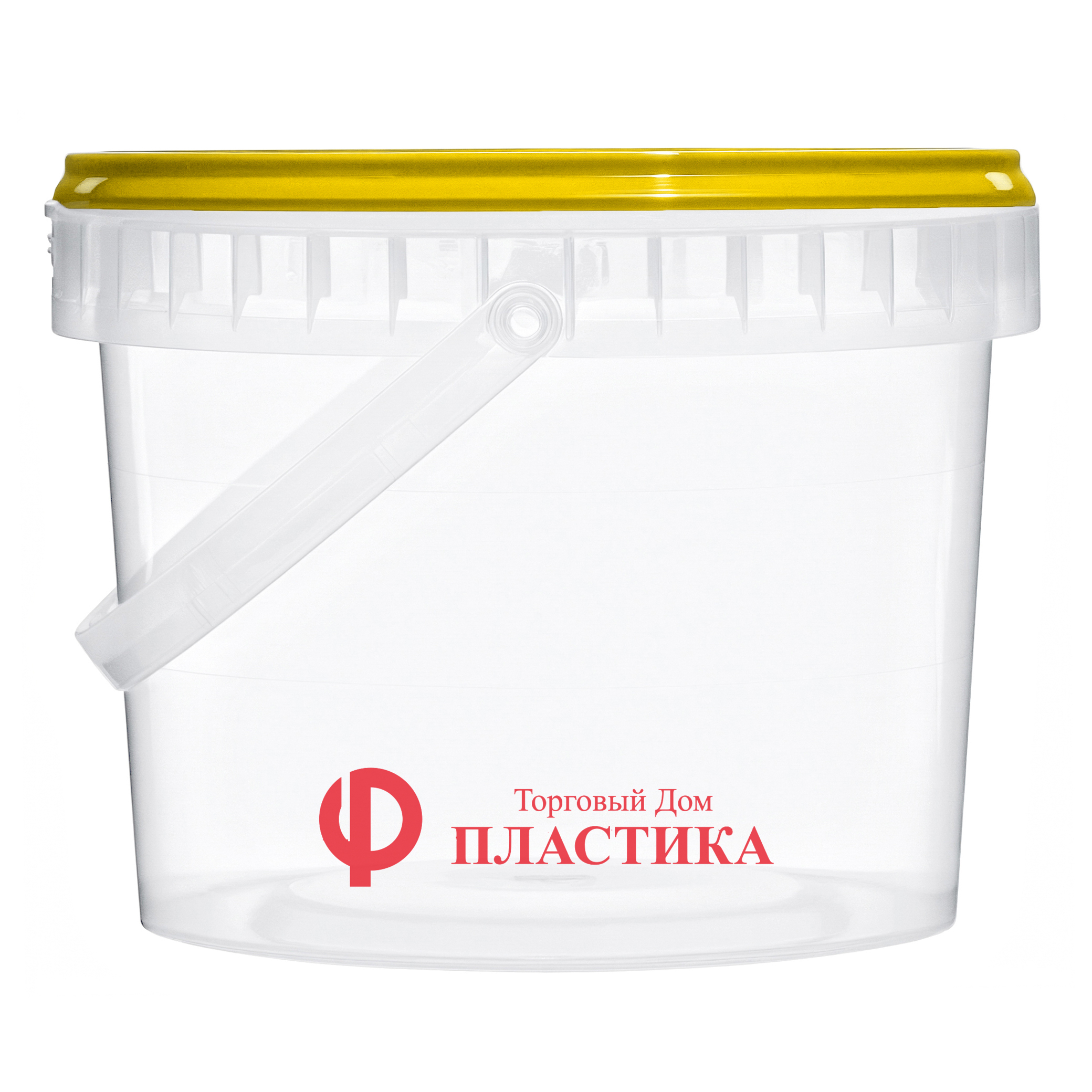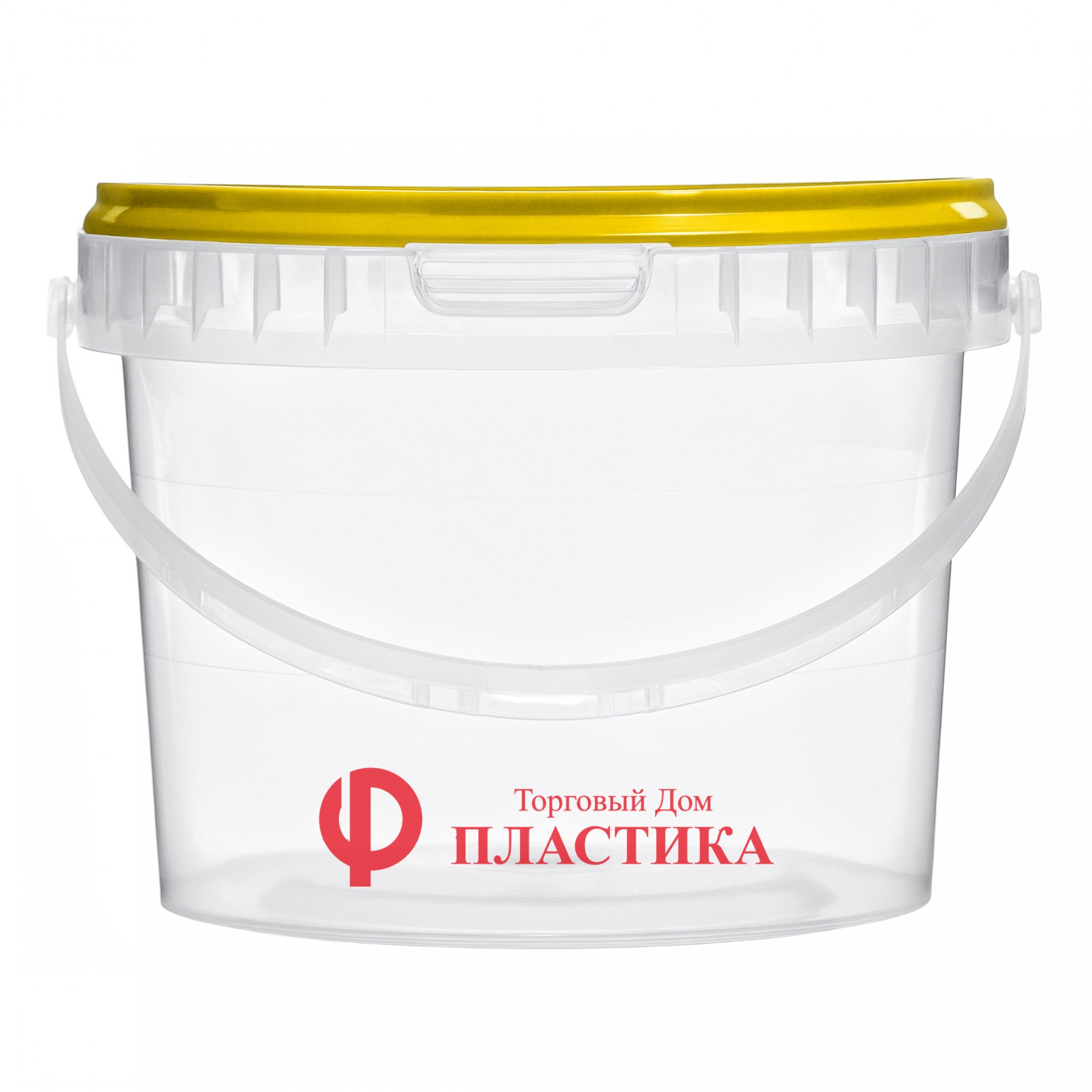 Пластиковое прозрачное ведро объемом 2,3 литра с яркой крышкой желтого цвета – хорошее решение как для презентации продукции на полках супермаркетов, так и для для хранения и перевозки жидкостей и сыпучих продуктов. Изготовлено из высококачественного пластика, который сочетает в себе легкость и долговечность. Прочная ручка. Можно нанести печать на корпус или крышку.